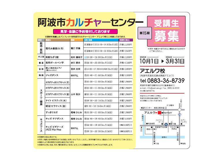 ~阿波市カルチャーセンターアエルワ校 受講生募集~